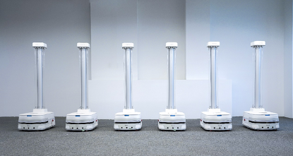 极智嘉智能紫外线消毒机器人Lavender拥有6个超145μW/cm²高照度大功率灯管,科学排布效果叠加更强大,同等面积内消毒更快。